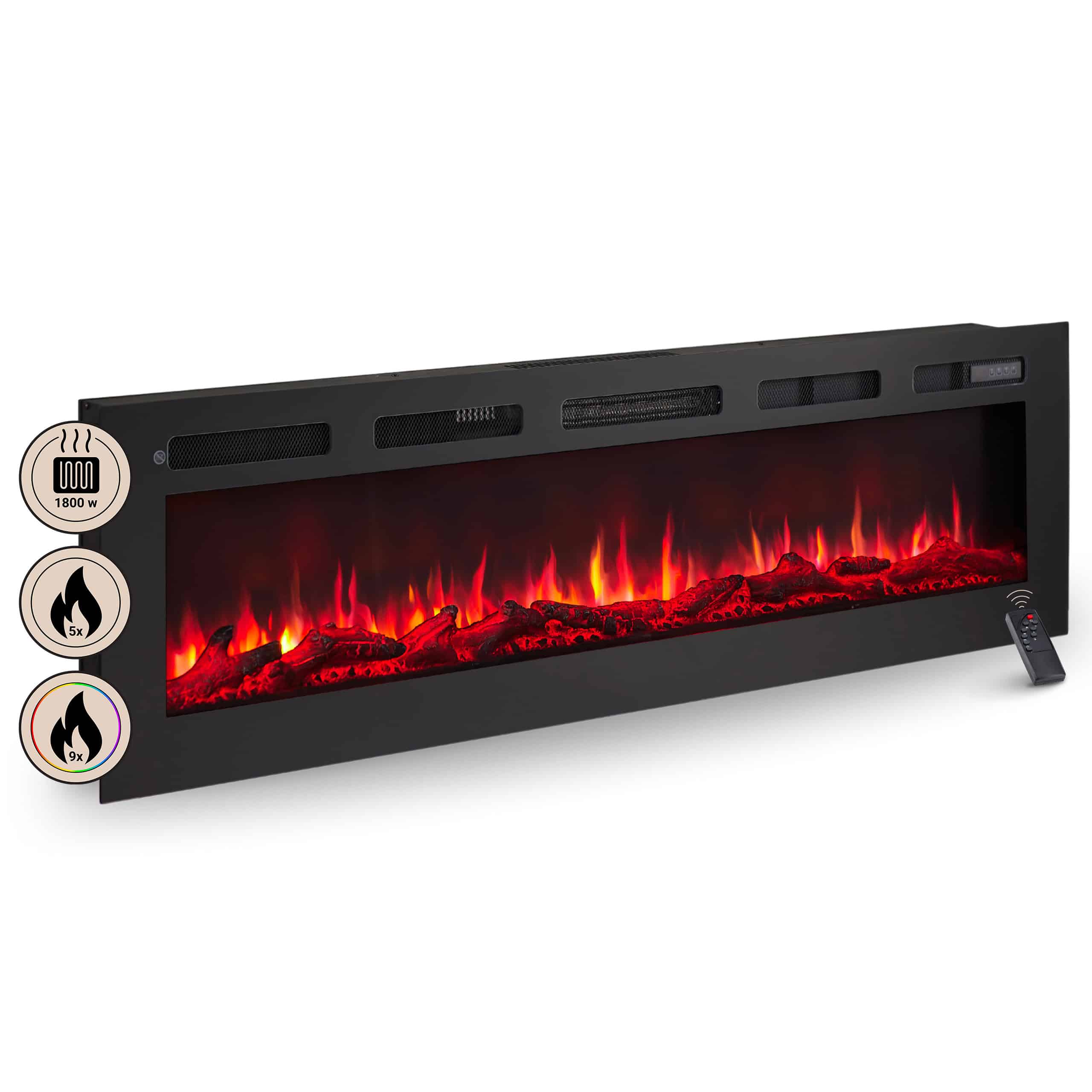 - Διαθέτει επιπλέον τηλεχειριστήριο για ρύθμιση της επιθυμητής θερμοκρασίας, χρωματισμών της φλόγας, χρωματισμών της θράκας της εστίας, ένταση φωτεινότητας και χρονοπρογράμματος λειτουργίας έως 8 ώρες.